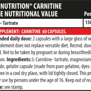 Carnitine frá Genius Nutrition inniheldur 100% L-Carnitine L-Tartrate (LCLT) – eitt öflugasta form L-Carnitine á markaðnum. Þetta íþróttabætiefni er sérstaklega hannað til að: