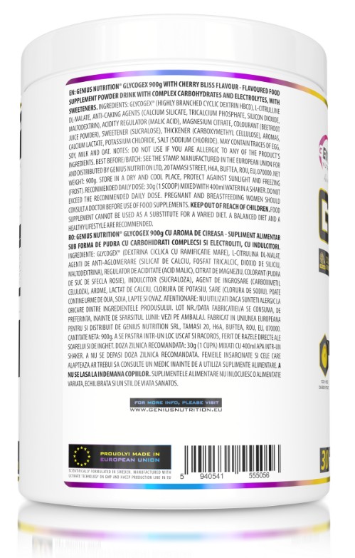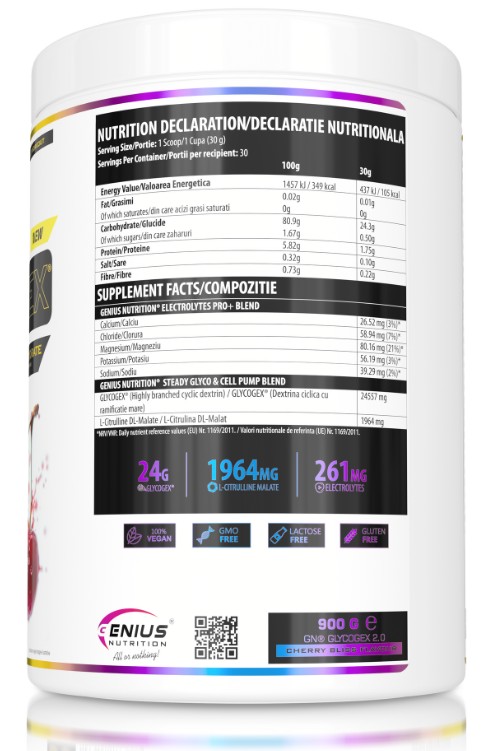 Genius Nutrition® GlycoGex er frábær kolvetnadrykkur. Formúlan inniheldur hágæða Highly Branched Cyclic Dextrin (HBCD) Citrulline Malate og söltum og steinefnum til að sjá líkamanum fyrir því sem hann þarf fyrir erfiðar æfingar.